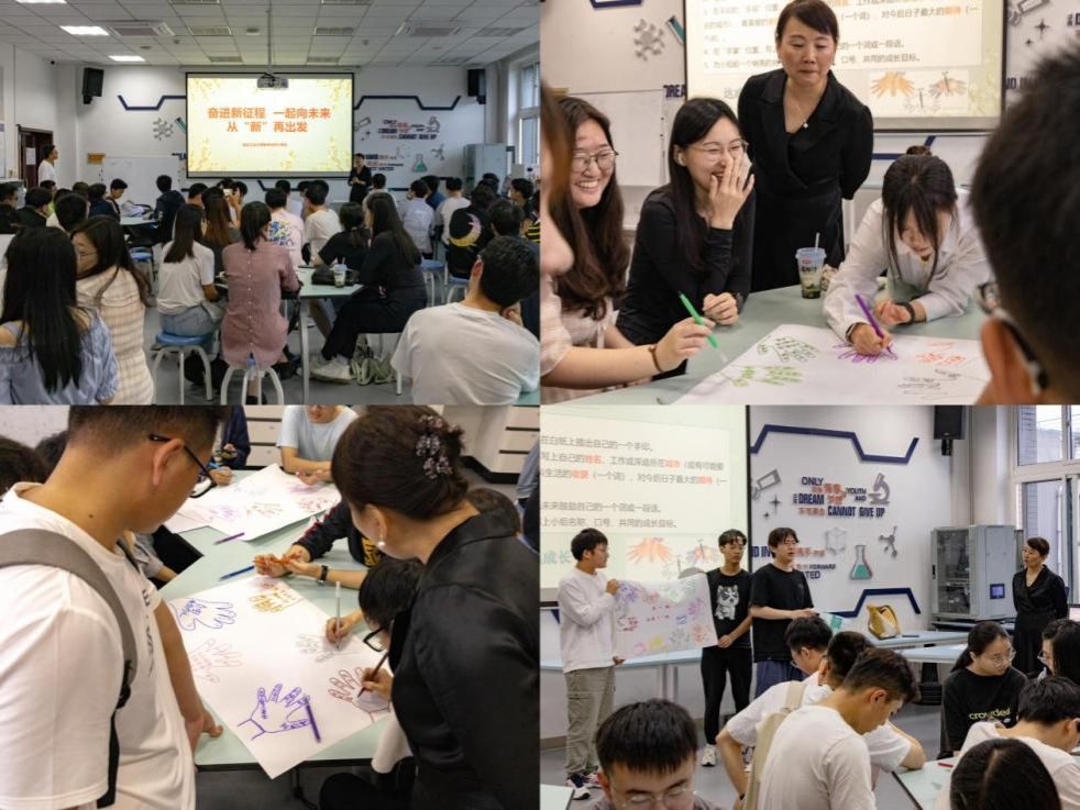 会议第一环节,由王莉老师以“奋进新征程,一起向未来,从‘新’再出发”为主题,开展了“小手印”团队建设活动,员工踊跃参与,分享交流了自己对未来的期许与校园生活里的收获;接着王莉老师与在场同学一同回忆校园生活,强调了校训“公诚勇毅”对员工未来生活的重要意义,希望未来同学们面对学习与工作时要践行“三实一新”校风,做有家国情怀、追求卓越、引领未来的工大人。王莉老师还与同学们一起展望未来,告诫员工走入职场后,要勇于尝试,适应新环境,淡化个人意识,树立团队、合作意识,职场逐梦,扬帆起航。