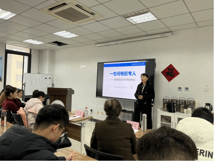 张雪霞以《一生问卷赶考人——连接现实与梦想的桥梁》为题开展讲座,通过讲述韦德bevictor老教授们的故事来激励同学们,希望各位同学以他们为榜样,见贤思齐。