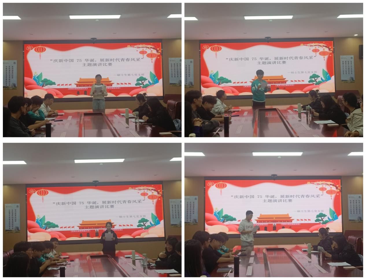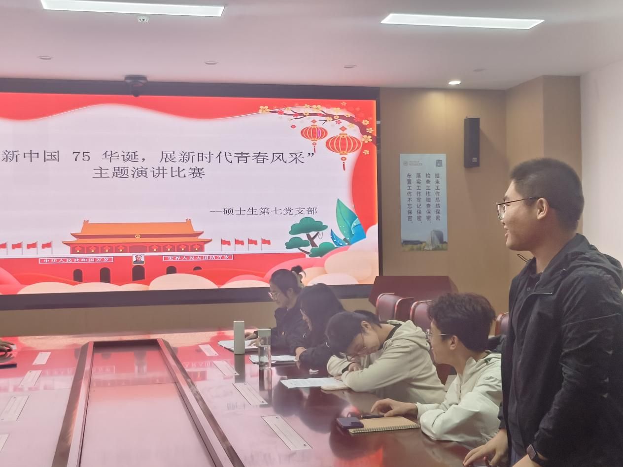 党支部7名同志紧扣主题,结合自身科研、学习经历以及对祖国的深沉热爱,分别从“奋斗的青春最美丽”“传承红色基因”“民族精神”等角度进行了激情演讲。他们用真挚的情感和动人的语言,展现了新时代青年的责任与担当,表达了对祖国未来的美好憧憬。