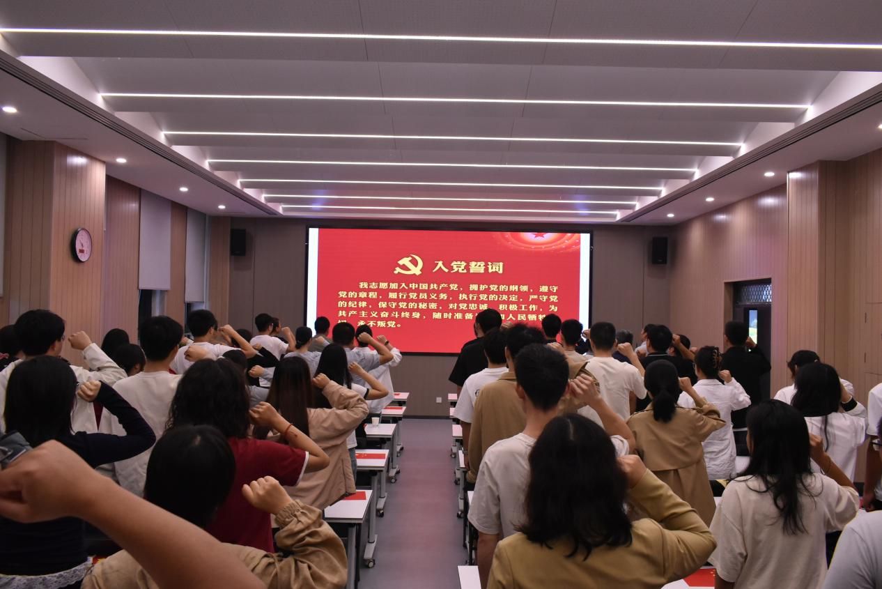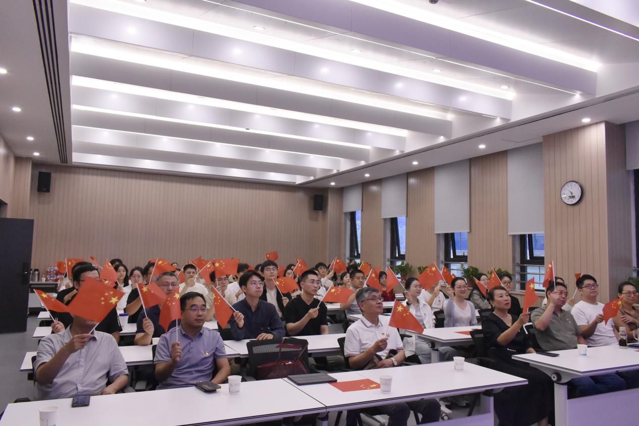 阅兵仪式结束后,党委书记王莉带领党员代表会场全体人员重温入党誓词。“我志愿加入中国共产党……”,铿锵有力的誓言在会议室回荡,提醒着每位党员不忘初心、牢记使命,继承革命先辈的光荣传统,为实现中华民族伟大复兴贡献力量。
