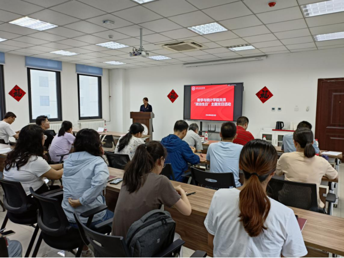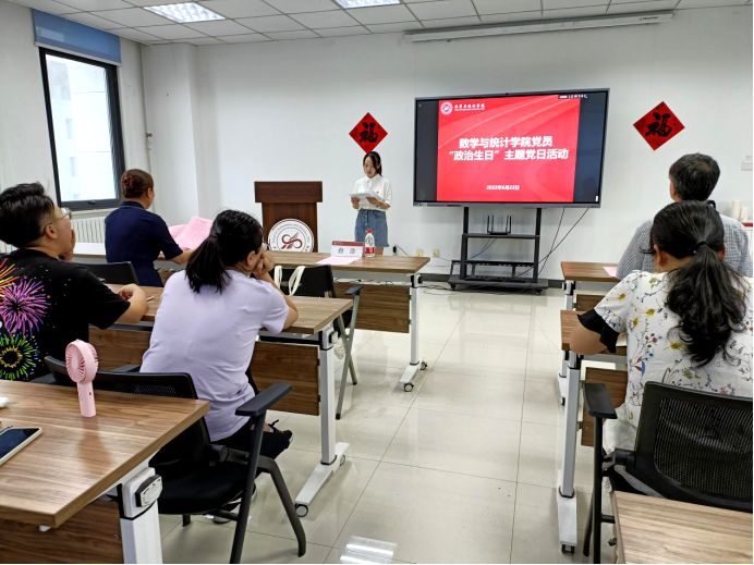 本科生师生融合党支部书记朱项项带领全体党员面向党旗重温入党誓词,回忆入党宣誓时的庄严承诺和奋斗决心,进一步激发党员政治热情,增强党员的光荣感、责任感和使命感。作为一名入党九年的青年教师朱项项说,入党是政治生命的开始,一定要珍惜自己的政治生命,要对得起组织的培养、领导的信任,努力工作,奉献国家。