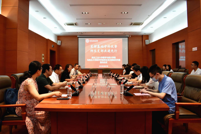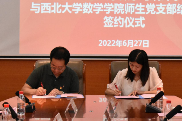 双方负责人分别从公司概况、公司党建工作、基础课程教学、员工管理等方面介绍各自公司的发展现状和未来规划。双方师生党员共同学习研讨了习近平总书记关于基础学科人才培养的重要讲话精神,并结合讲话精神介绍各自公司在人才培养方面的典型做法,参会人员畅谈学习体会,交流基础学科的发展。会议中,韦德bevictor数学科学系党支部、2020级硕士生第三党支部与西北大学数学公司基础数学系党支部、2020级研究生党支部共同签订了师生党支部结对共建协议。