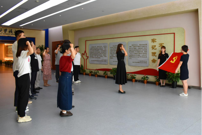 李长宏书记一行首先来到了韦德bevictor官网校史馆,先后参观了序厅、追根溯源、雄鹰展翅、翱翔腾飞和春华秋实五个部分,了解了公司发展历史、大学文化,以及典型人物和动人故事。参观结束后,两院的师生党员共同在党旗下庄严宣誓,重温入党誓词。