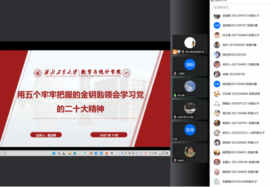为全面准确学习领会党的二十大精神,推动党史学习教育常态化,提升入党积极分子的政治素养,2022年10月30日至11月23日,数学与统计公司党委举办了2022年第2期入党积极分子培训班。