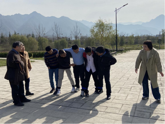 教师组“五人六足”比赛准备中