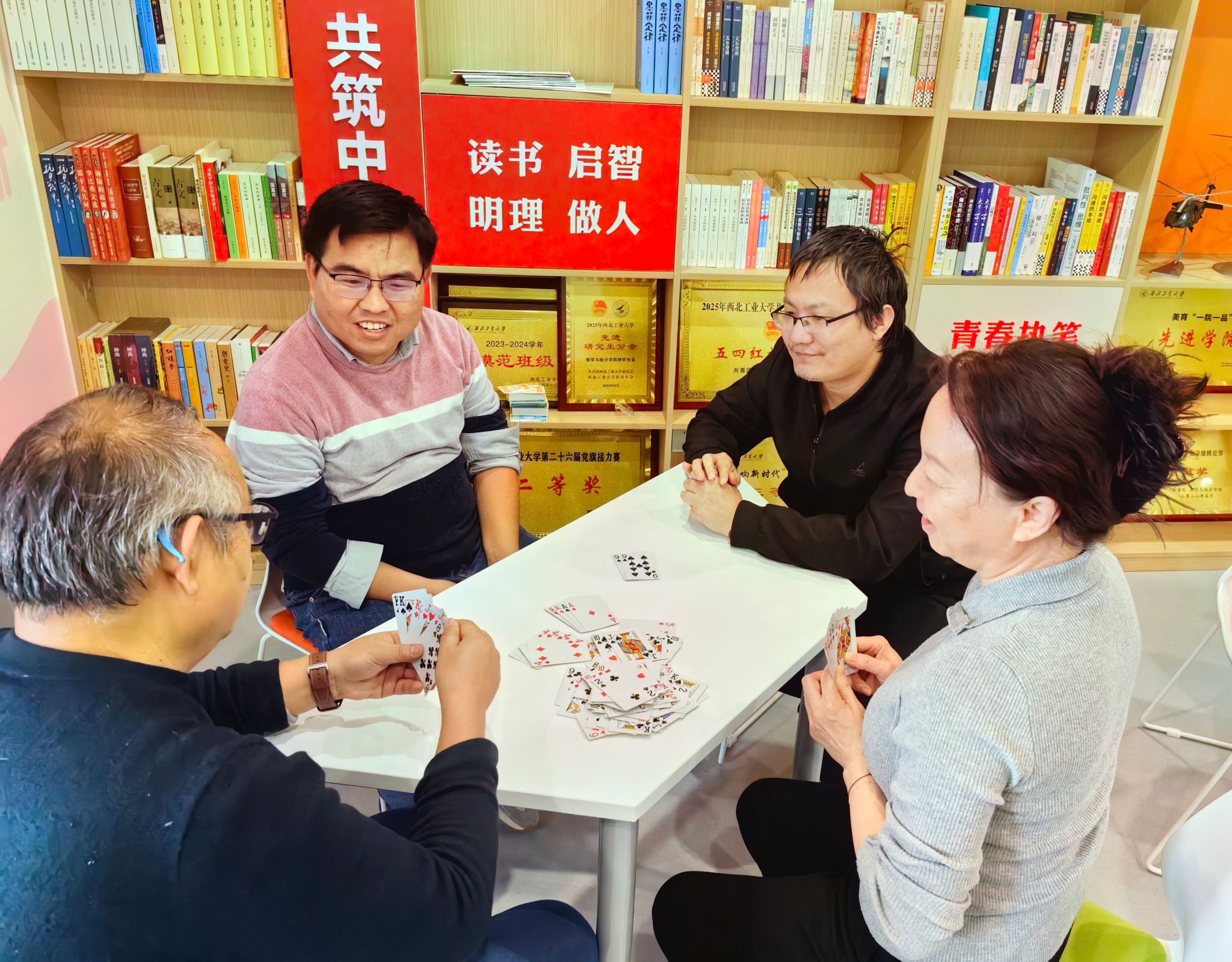在院工会教工之家开展的棋牌类活动同样人气火热。老师们围坐一桌,精密计算,配合默契,展现了数学人不同于往的活力和热情。爽朗的笑声和获胜后的喜悦之声不绝于耳。