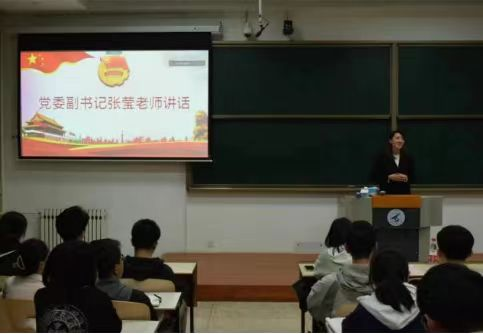 我们邀请了副党委书记作为主讲嘉宾。她结合自身的学术经历,分享了如何在坚定核心思想引领下,不断追求卓越,勇攀科学高峰的故事。同学们听得津津有味,深受启发。