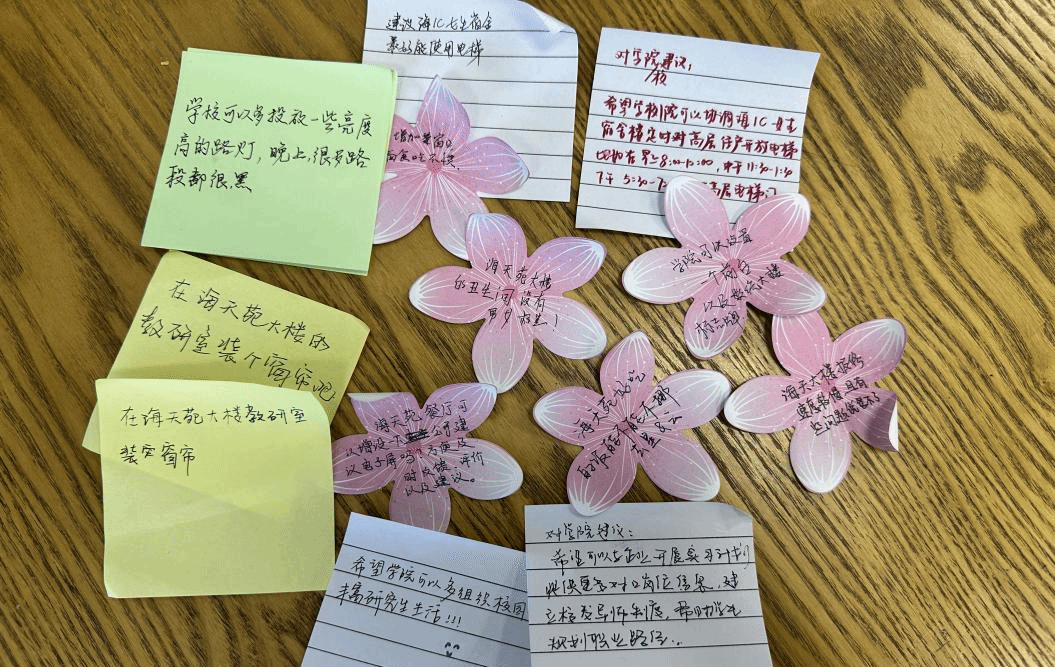 座谈会上现场征集了同学们对公司的意见和建议,这些反馈内容广泛,涵盖了从日常生活到学习环境的各个方面,包括教研室光照不足、教室设施维修以及职业发展规划支持等问题。每一条建议都凝聚着同学们对改善校园生活的热切期望与积极态度。针对大家关心的各项议题,杜乔同学详细记录并承诺会及时将这些问题反馈给公司相关部门,确保每一个声音都能得到重视。