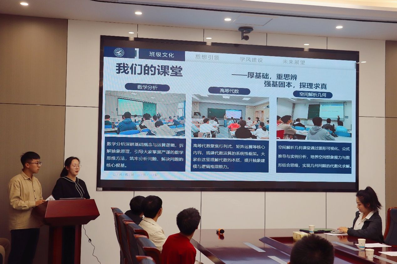 随后强基班班长张淼琳和高霁业从班级文化、思想引领、学风建设和未来规划四个方面,汇报了开学两个月来的班级建设成果,展现了强基班学子笃行不怠的精神风貌。