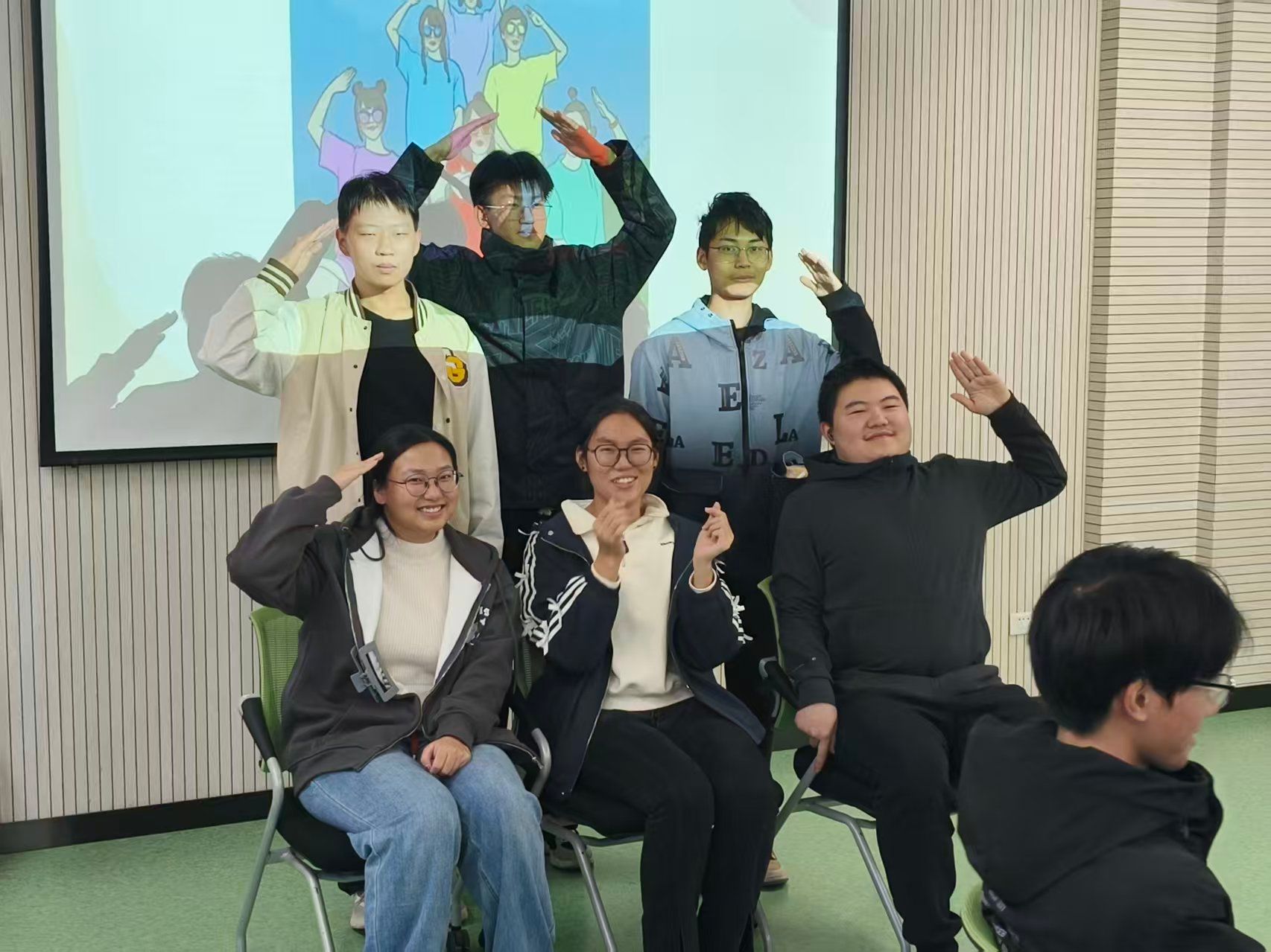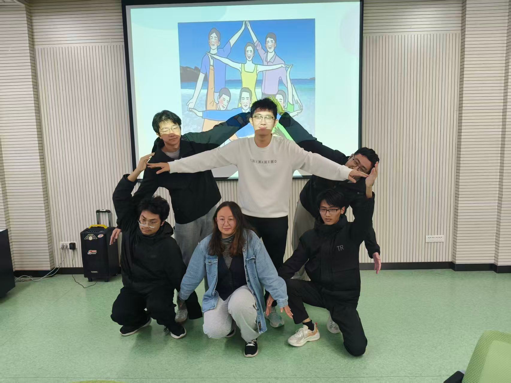 在接下来的核心环节,郭老师围绕“个体-协作-默契”梯度依次展开。“OH卡自我介绍”“默契大比拼”“真人扫雷”等环节,既建立小组内部信任与理解,促进情感表达,又增强了小组凝聚力、加强合作与协调。