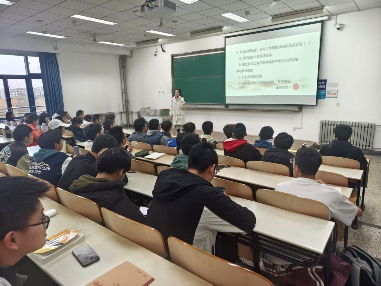 会议伊始,张倩老师带领全体同学深入学习“铸牢中华民族共同体意识”相关内容。通过PPT演示、典型案例分享与互动交流等形式,同学们系统了解了中华民族共同体意识的核心内涵与时代价值,深刻认识到各民族守望相助、团结奋斗的重要意义。张倩老师强调,新时代青年学子应树立正确的民族观、国家观,将个人理想融入国家发展大局,以实际行动维护民族团结与国家统一。