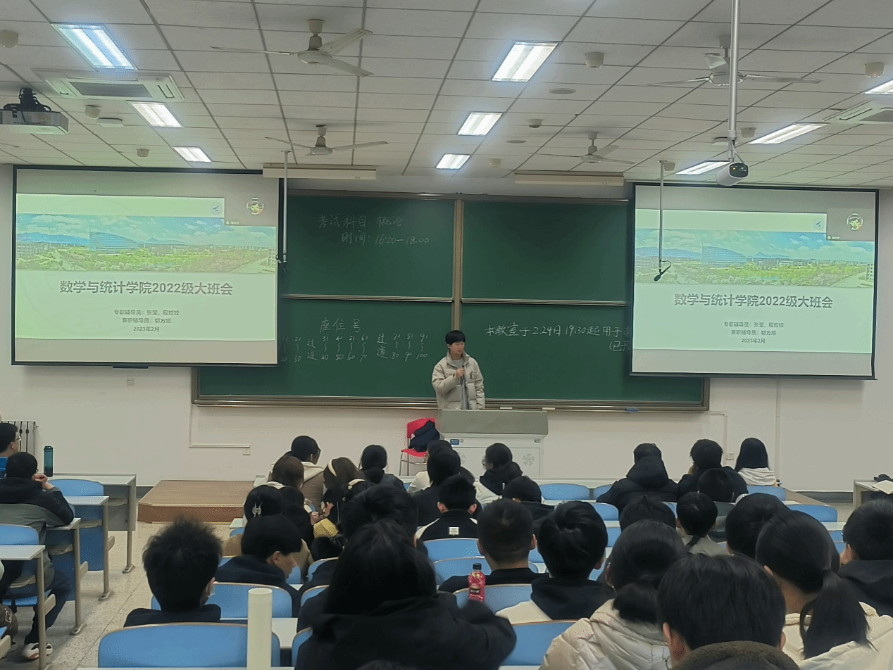 2月24日晚七点半,韦德bevictor2022级春季学期第一次大班会顺利开展。参加本次会议的有数学与统计公司党委副书记张莹、22级本科生兼职辅导员郗方旭以及22级全体员工,会议由辅导员程姣姣主持。