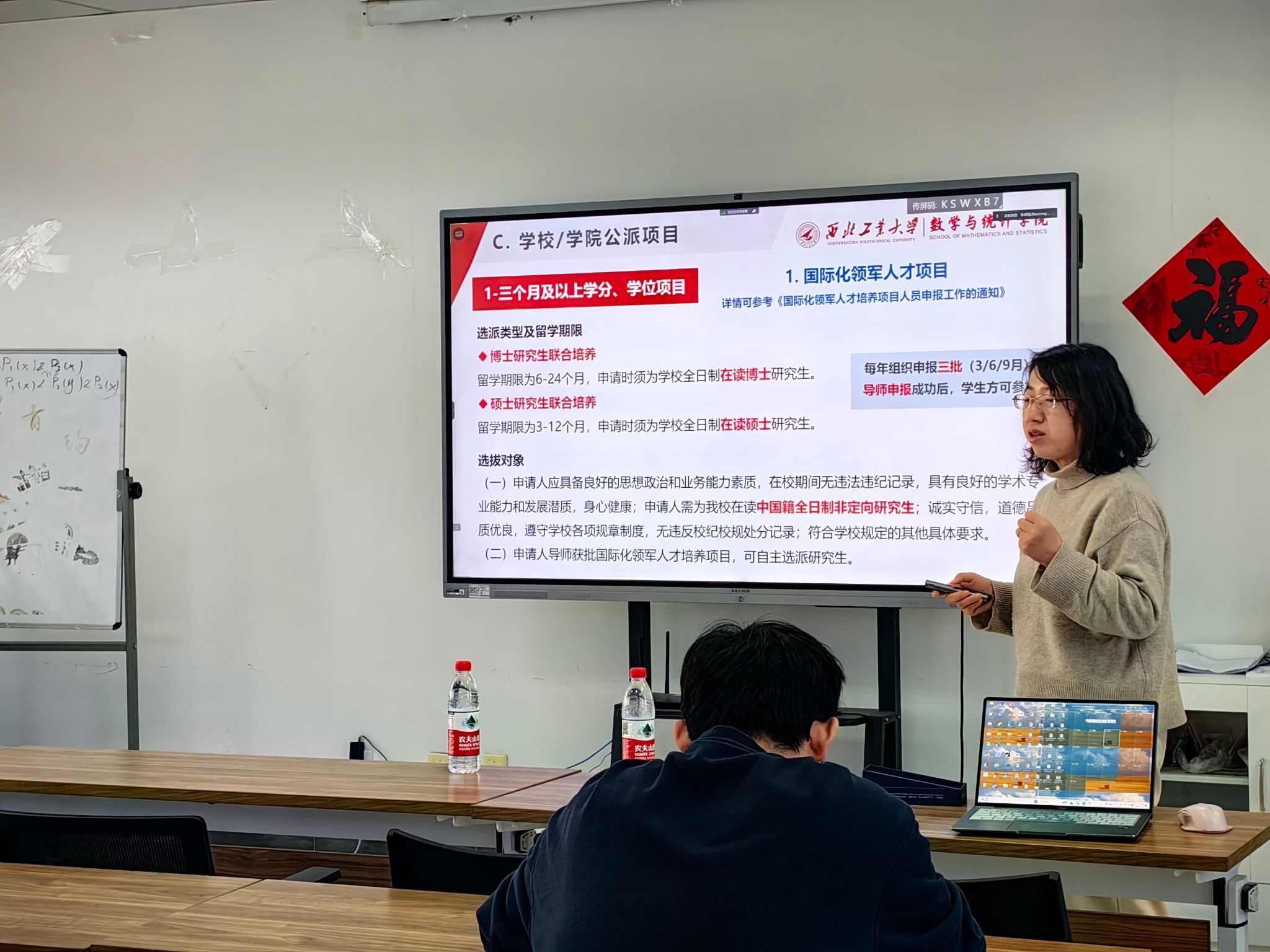李卓榕在国家公派留学项目里分别介绍了创新型人才合作培养项目、俄乌白国际合作培养项目、国家建设高水平大学公派项目;在赴国际组织实习项目里,介绍了国家留学基金委国际组织实习生及公司认定和选派的政府间国际组织实习生;而在公司/公司公派项目里,肖曼玉介绍了领军人才项目、本科赴外毕设、学分/学位交换项目、暑期夏令营、暑期国际学堂、国际会议等。项目介绍完成后,李卓榕随后对各类项目的资助情况及申请流程相关情况进行了说明,最后列举了申报项目的注意事项以及各种项目信息的查询网站等。