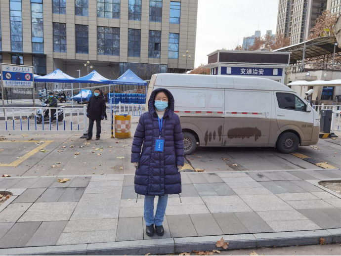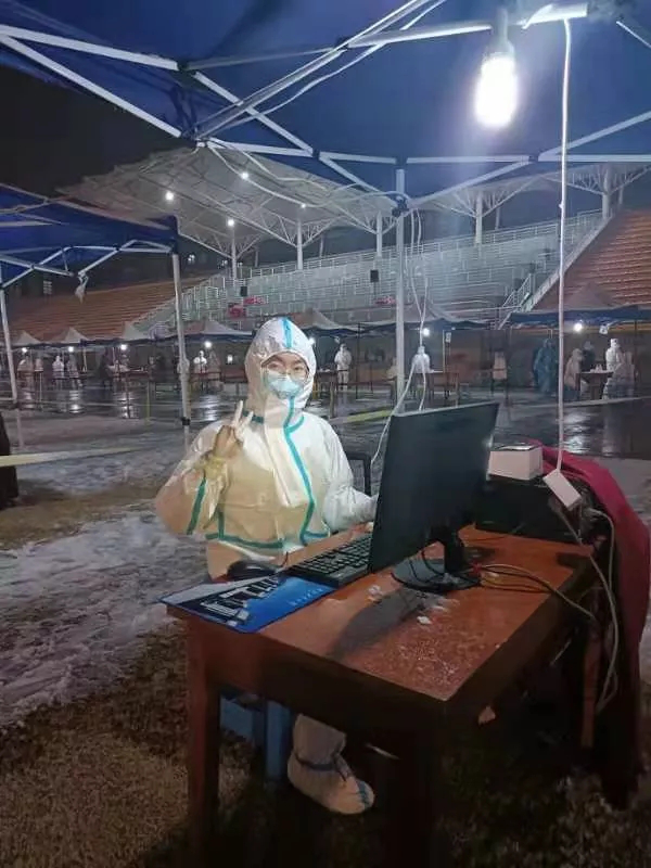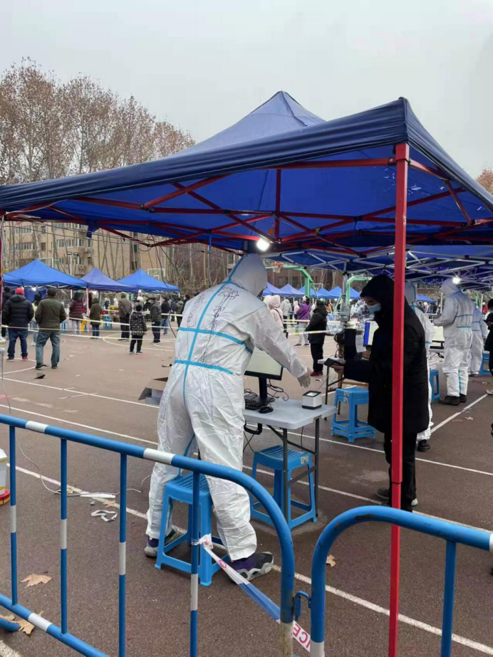 在友谊、长安校区的核酸检测工作现场,身穿“大白”防护服,负责为师生核对身份,检验西安“一码通”的是党委书记王莉、经理助理郭千桥、班凯、青年教师潘璐璐还有员工志愿者王彬、袁昊、王璎斐,几天的分批次工作下来,细心、严谨、寒冷是大家最大的感受,特别是长安校区的风雪天,更是让工作者印象深刻,用心地付出也势必会为全校师生们的健康编制好一面“安全网”。