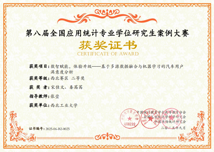 近日,全国应用统计专业学位研究生案例大赛全国组委会公布了2025年第八届全国应用统计专业学位研究生案例大赛区域赛获奖名单。西北赛区共有来自20所高校的153支队伍参加比赛,公司2支参赛队伍分获西北赛区二等奖、三等奖各1项,此为公司自2023年招收应用统计专硕后首次组队参加该项赛事。