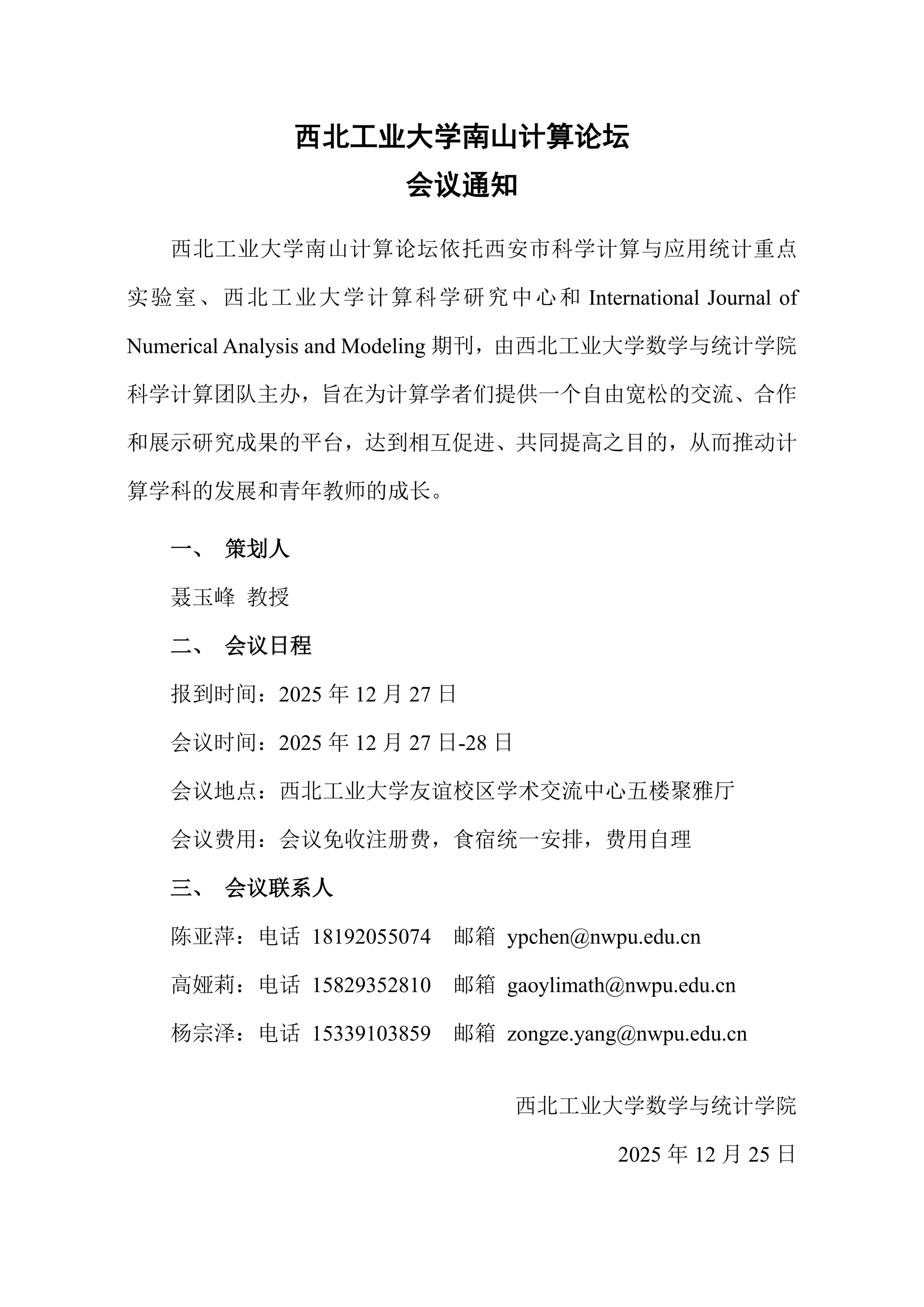 韦德bevictor官网南山计算论坛会议通知