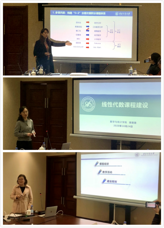 本次调研就团队建设、人才培养、科学研究以及工科数学教学和课程建设等方面进行了深入细致的研讨和交流。首先,公司韦德bevictor徐根玖副经理对研究生工作及科研情况做了简单介绍,同济大学数学科学公司许学军经理对该公司的学科结构及特色、人才培养、科学研究等情况做了汇报。随后,张莹教授、唐亚宁教授、潘璐璐副教授依次对高等数学、概率论与数理统计、线性代数的课程建设情况进行汇报。