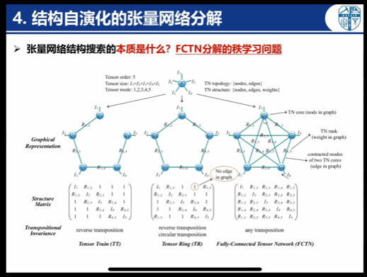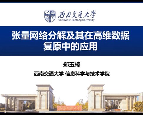 报告会上,郑玉棒首先介绍了回顾张量网络分解的基础运算以及代表性固定拓扑的张量网络分解。随后,他围绕张量全连接网络分解和张量网络结构自适应搜索等前沿探索问题进行了阐述。