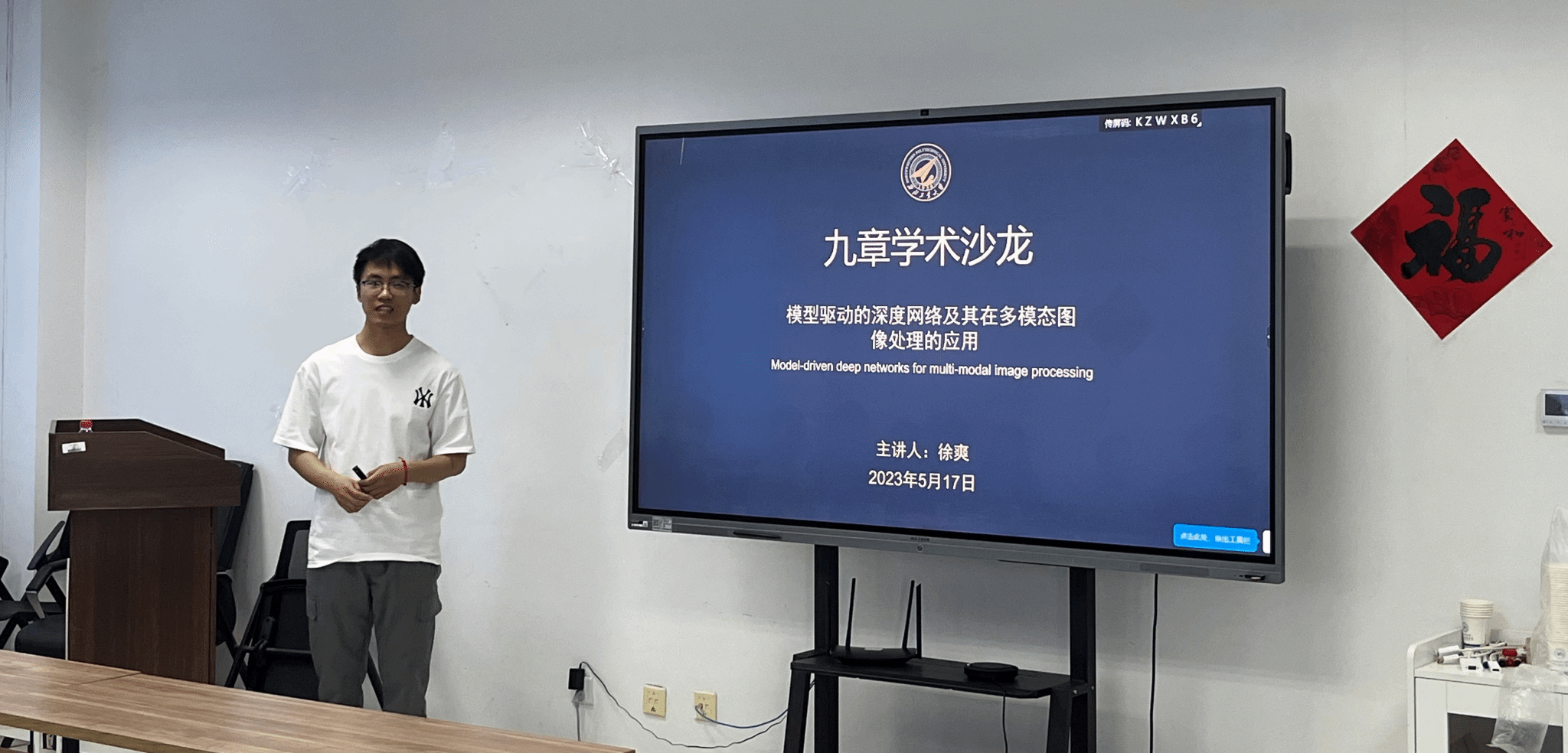 首先,聂玉峰表示,举办学术沙龙是促进师生间学术交流与沟通的有效渠道,通过科研工作的交流分享,不仅助力学科交叉融合,更加有利于碰撞新思路、开辟新方向。他鼓励员工多参与学术会议,尽早接触与了解科研工作,提前为就业谋划布局。接下来,徐爽老师做了题目为《模型驱动的深度网络及其在多模态图像处理的应用》的报告。徐爽分别从多模态图像处理的数学模型、模型驱动的深度学习、应用和总结四个部分详细介绍了本人的研究内容,并与参会师生进行了深入热烈的讨论。