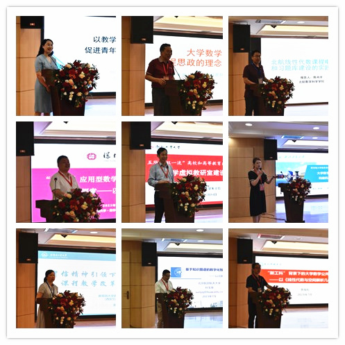 会议专题报告阶段,合肥工业大学朱士信教授以《大学数学虚拟教研室建设的思考与探索》为题、吉林大学李辉来教授以《数学基础课思政建设》为题、哈尔滨工业大学(威海)姜薇教授以《贺信精神引领下的微积分课程教学改革与实践》为题、北京航空航天大学孙玉泉教授以《基于知识图谱的数字化智慧课程建设与应用—以工科数学分析课程为例》为题、电子科技大学李厚彪教授以《新工科背景下的大学数学公共课建设》为题、北方民族大学高义教授以《关于数学一流团队建设的一些思考—以北方民族大学为例》为题、北京航空航天大学陈肖宇教授以《北航线性代数课程电子教材和习题库建设的实践与探索》为题、深圳大学韩雨教授以《数学+”应用型数学类本科专业人才培养模式探索—以深圳大学为例》为题、中国地质大学耿凤杰教授以《以教学竞赛为抓手,促进青年教师快速成长》为题、韦德bevictor官网都琳教授以《大学数学区域教学联合体构建机制的探索与实践》为题分别做专题报告。