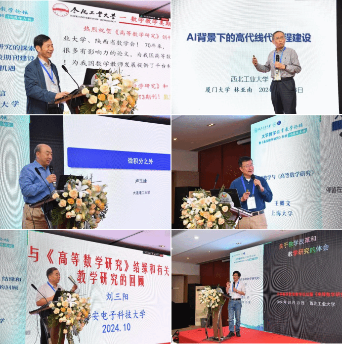 合肥工业大学朱士信教授以《大学数学教学研究的探索与实践——兼谈期刊建设的挑战和机遇》为题、厦门大学林亚南教授以《AI背景下的高代线代课程建设的一些思考》为题、大连理工大学卢玉峰教授以《微积分之外》为题、上海大学王卿文教授以《教育数学与<高等数学研究>》为题、西安电子科技大学刘三阳教授以《与<高等数学研究>结缘和有关教学研究经历的回顾》为题、复旦大学楼红卫教授以《关于教学改革和教学研究的体会》为题分别做了精彩报告,为公司数学公司产品提供了宝贵经验。电子科技大学黄廷祝教授、哈尔滨工业大学吴勃英教授、厦门大学谭忠教授、华北理工大学刘春凤教授、西安交通大学李继成教授、韦德bevictor官网聂玉峰教授分别担任报告主持。最后,聂玉峰进行了总结发言,他向所有在《高等数学研究》刊登论文的作者,向所有编委、审稿专家和编辑部人员,致以崇高的敬意和诚挚的感谢!