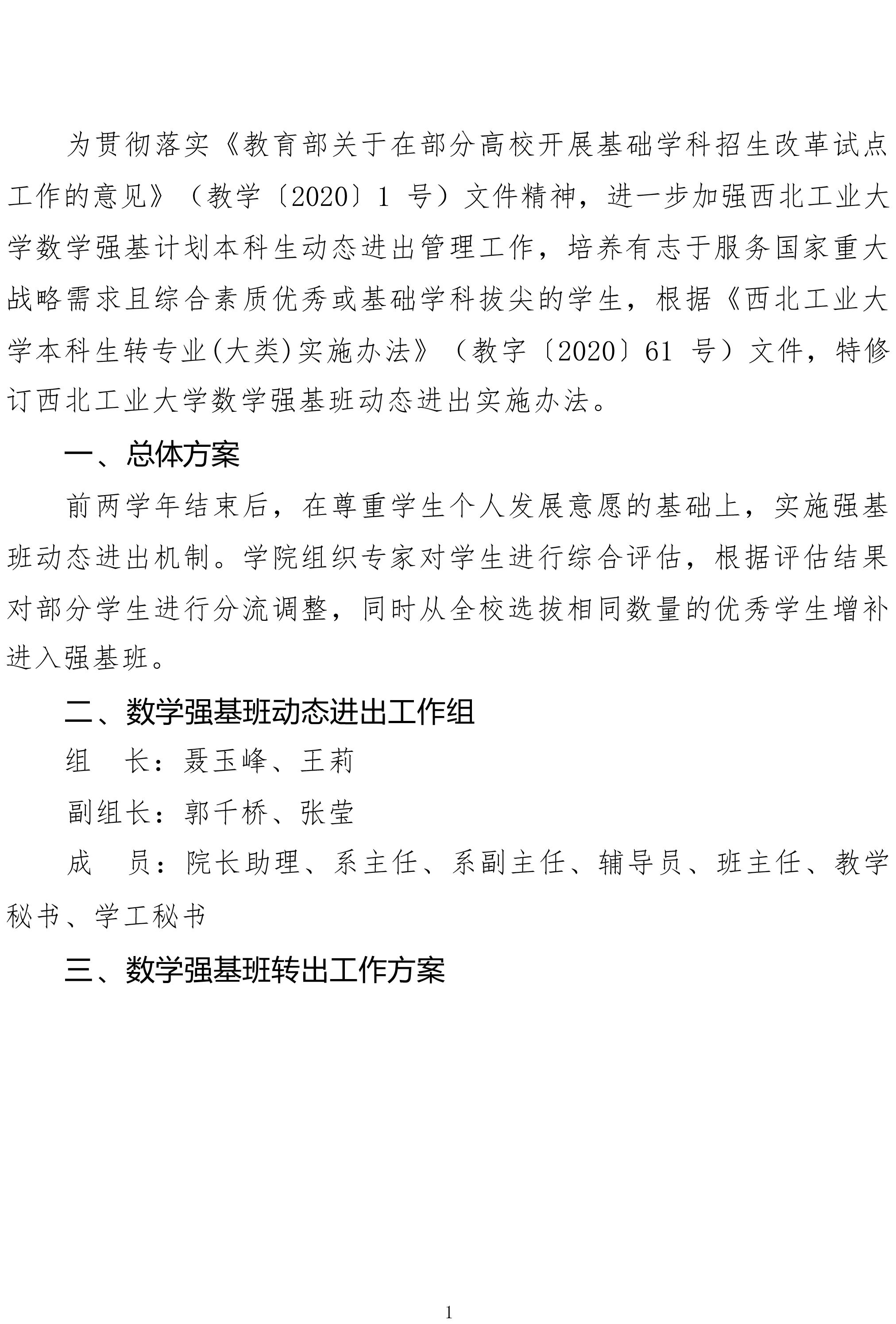 韦德bevictor官网数学强基班动态进出实施办法通知(试行)
