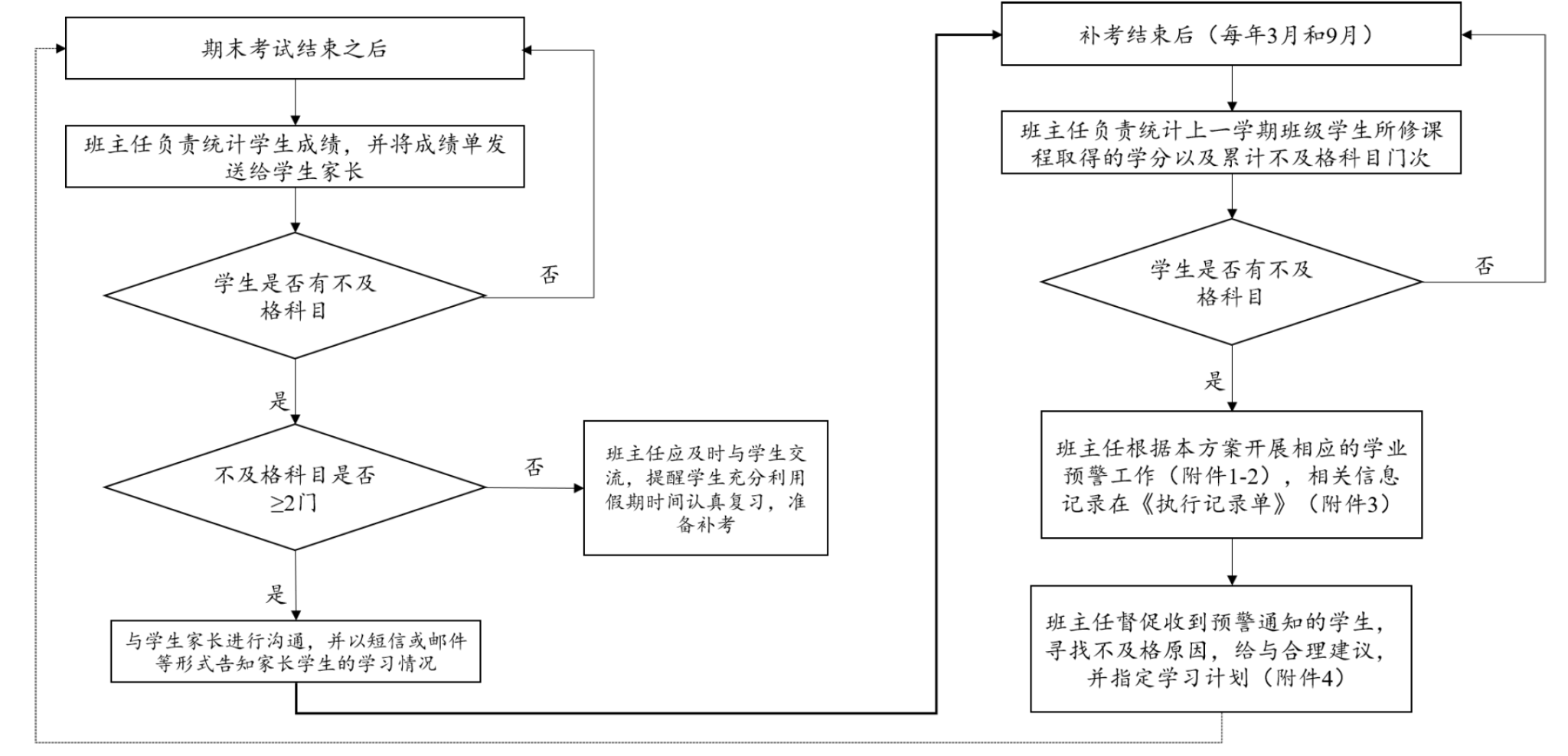 注:每学期初补考成绩提交后计算上学期预警级别。