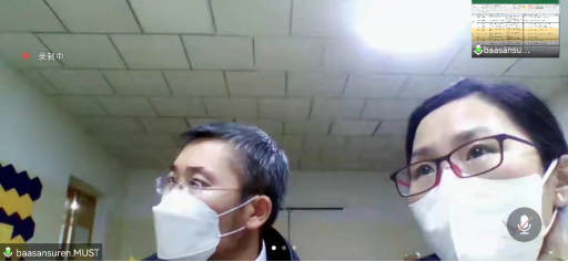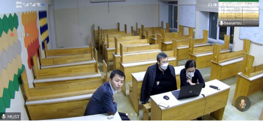 针对蒙古员工远程学习情况这一个议题,数统公司概率统计系主任王亮教授汇报了外蒙古员工学习情况包括组织单独远程上课授课、配备单独助教协助辅导,以及员工最终学习成绩情况。肖曼玉老师汇报了公司开展学习情况调查结果,提出了线上授课网络信号不稳定、员工跟课与老师交流不便等具体问题。接下来,蒙古科技大学副经理塔米尔教授,简要汇报了蒙古员工在公司学习环境、学习状态和对员工的管理情况,通过了解分析现有8名员工的成绩,希望能与我方一起针对员工当前远程学习问题,寻求有效的解决方案。